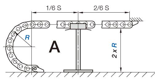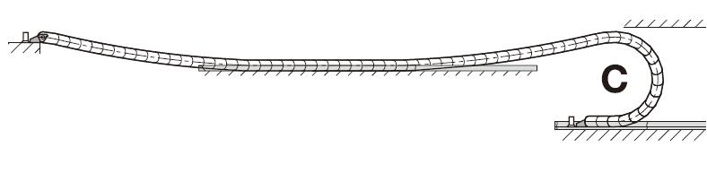 如果在整個行程中拖鏈的上部未接觸下部。這種情況我們稱之為架空。移動端到拖鏈彎曲半徑圓弧的距離稱之為架空長度。架空是最常用的應用。工程拖鏈非常適用高要求長使用壽命的場合。最在架空長度取決于拖鏈或拖管的類型以及內部負載。